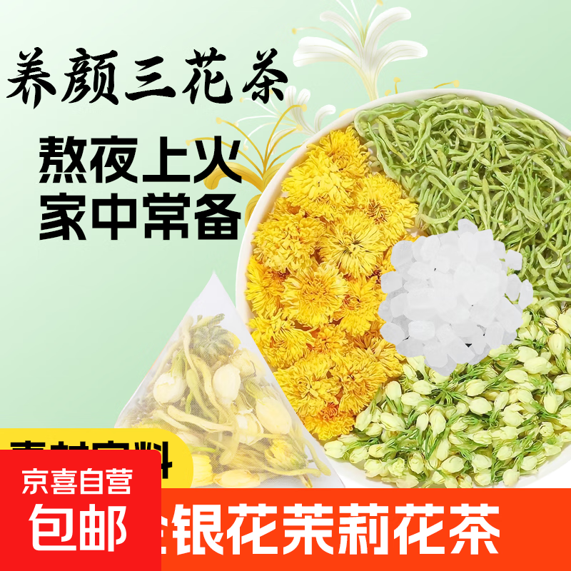金银花菊花茉莉花茶组合三花茶清热去火祛解痘毒养生茶包泡水喝 三花茶(金银花茉莉花菊花茶)100克*3袋