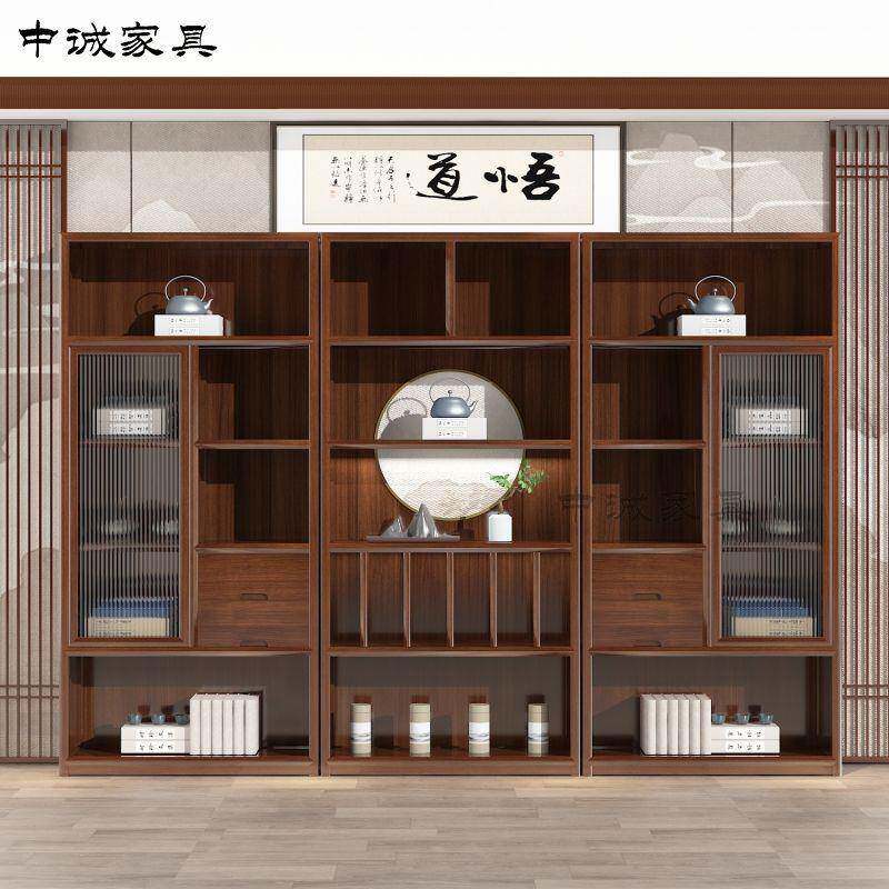 新中式办公室文件柜实木办公桌茶叶储物柜禅意展示柜博古架陈列柜