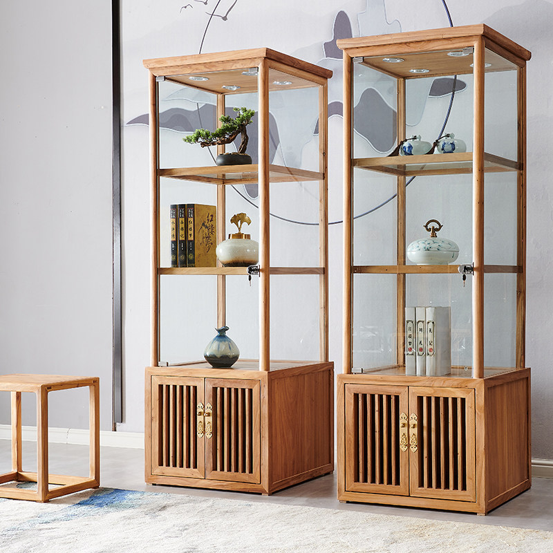 老榆木展示柜新茶叶珠宝展示柜文玩货架实木展柜