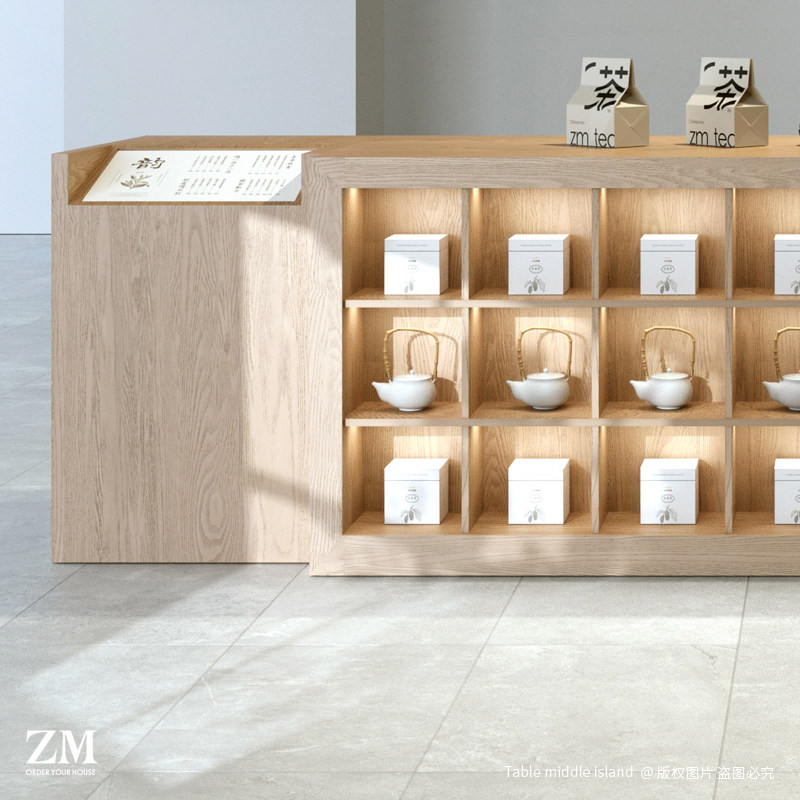 中岛台新派茶室流水台新式茶居茶叶展示柜中O式货架商品陈列柜长