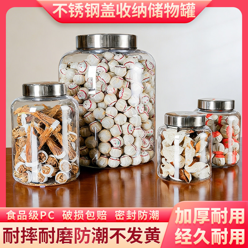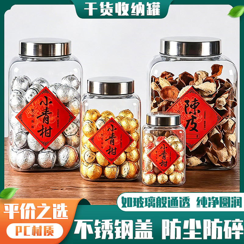 不锈钢盖透明塑料密封罐茶叶干果陈皮食品级储物罐防尘防碎储物罐