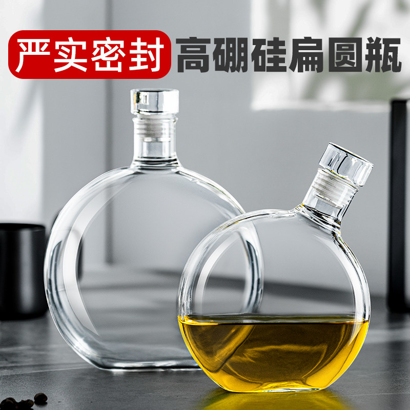 家用高硼硅玻璃泡酒壶高档便携外带冷泡瓶茶叶饮料咖啡扁圆密封瓶