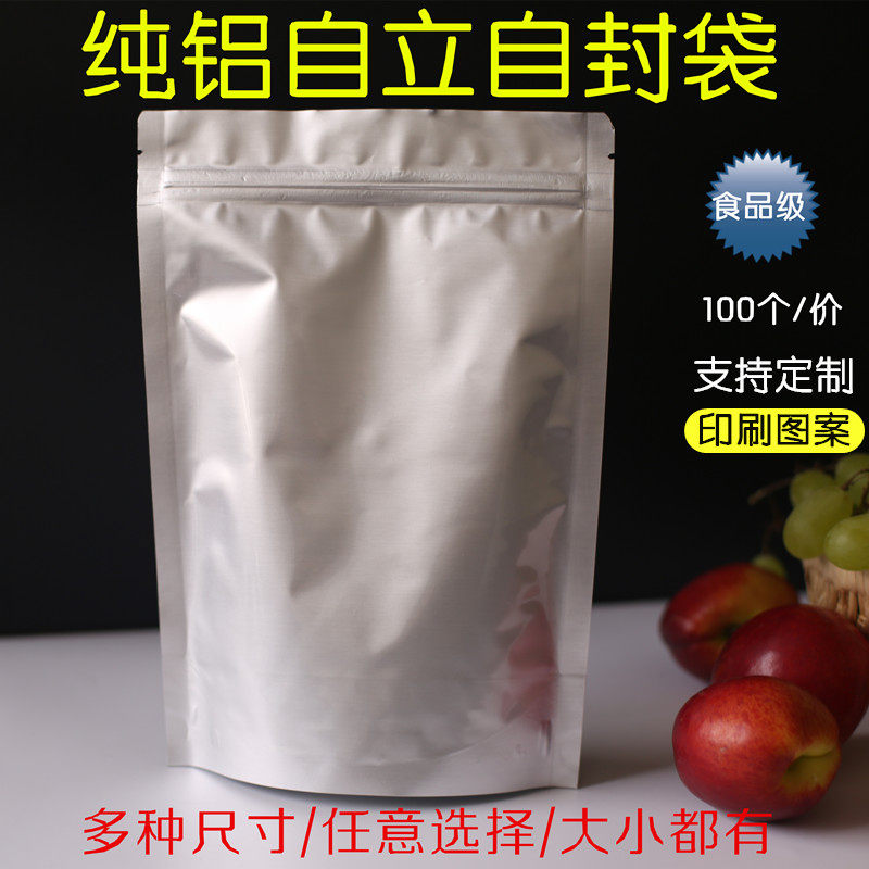加厚铝箔袋自封袋锡纸o茶叶包装袋纯铝自立食品塑封袋子封口密封