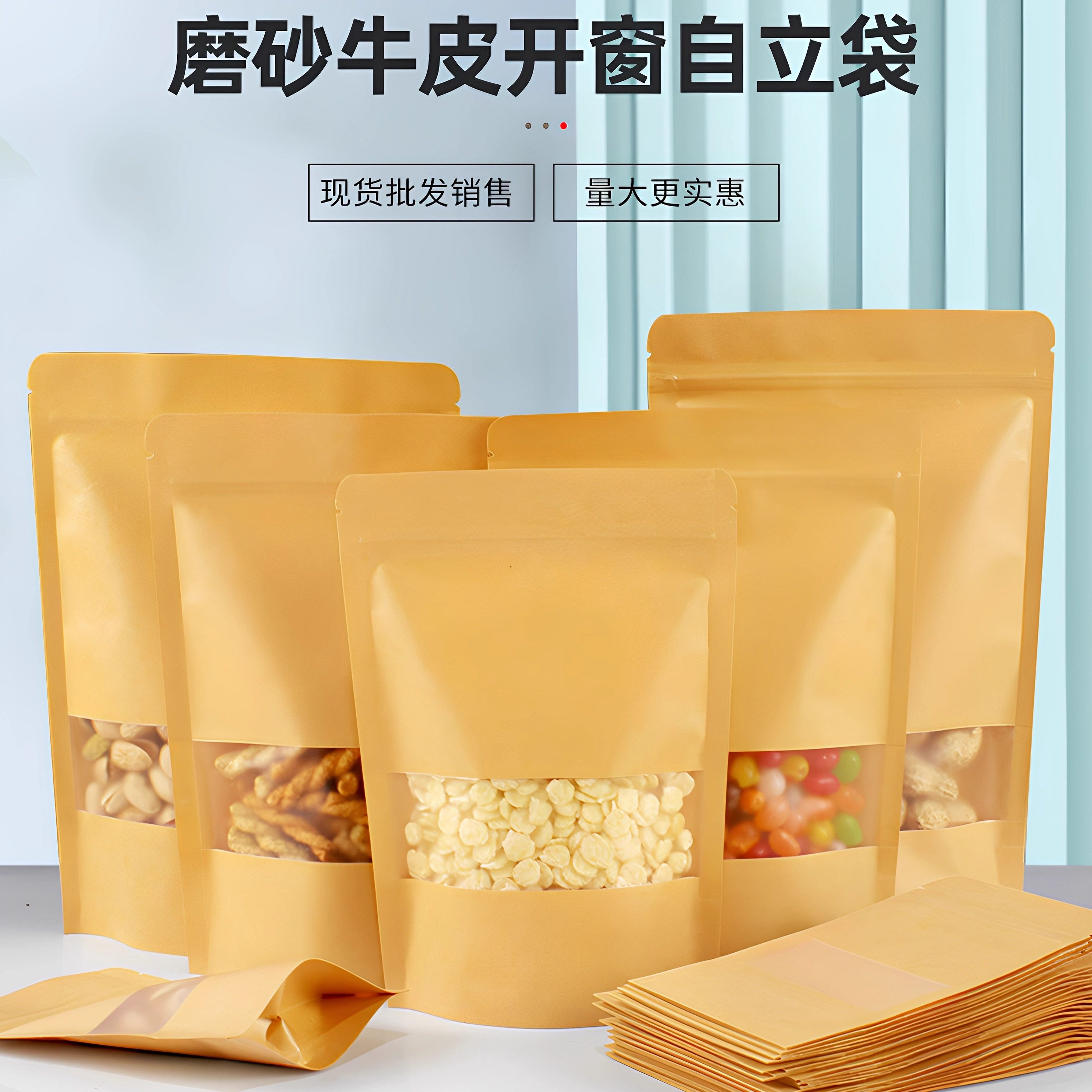 牛皮纸袋开窗食品纸袋磨砂干果杂粮米瓜子包装自封袋密封茶叶袋