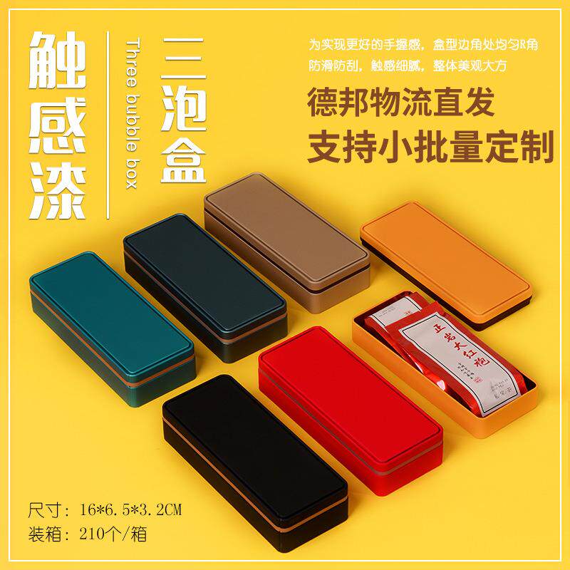 触感茶叶铁盒长方形马口铁罐便携三泡样品盒岩茶两泡装茶叶盒