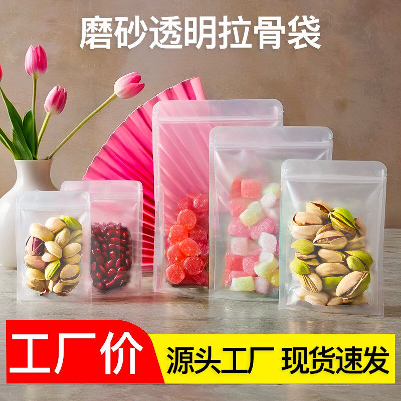 加厚磨砂透明食品包n装平底自封袋花茶五谷茶叶果茶零食包装密封