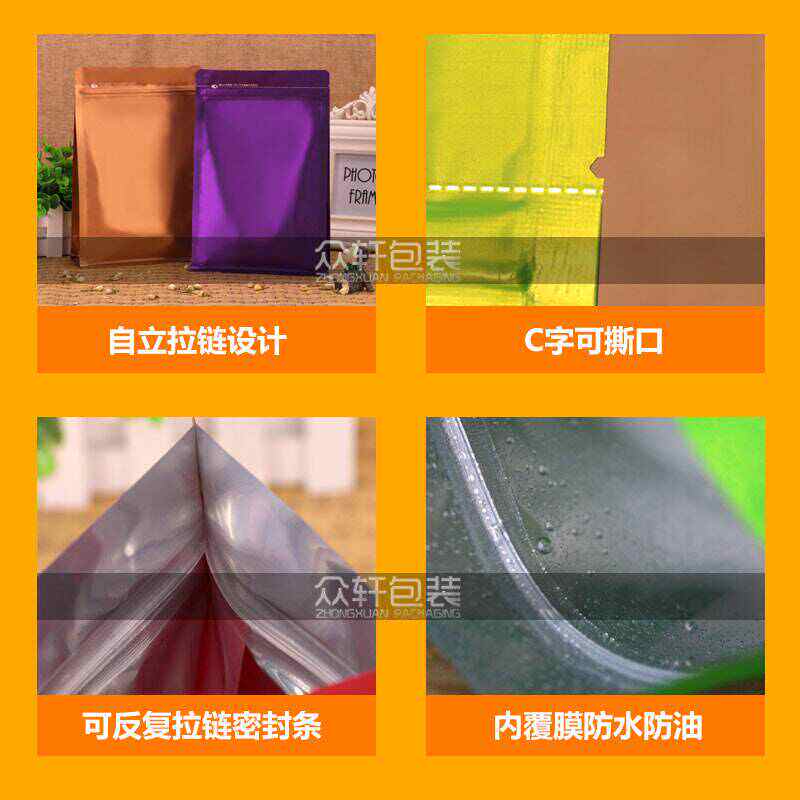 茶叶八边封包装袋分装加厚封口袋彩色自封袋密封食品自封自立袋