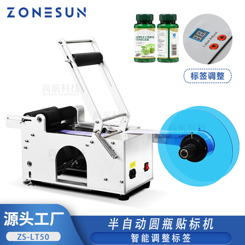 -50半自动圆瓶贴标机 圆罐药瓶标签粘贴机 茶叶罐子贴标签机器