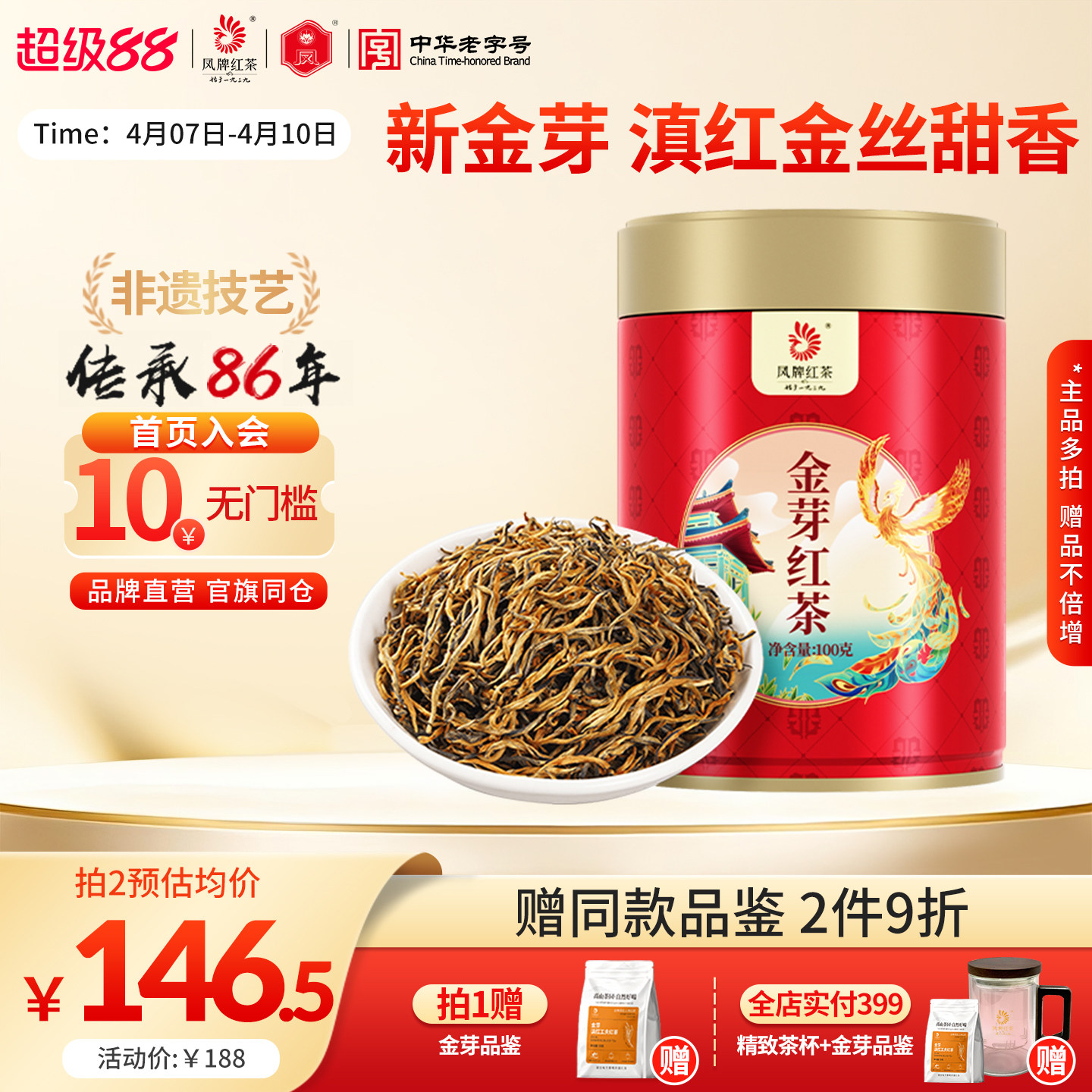 凤牌红茶金丝滇红茶蜜香金芽茶特级浓香云南凤庆茶叶送礼100g散装