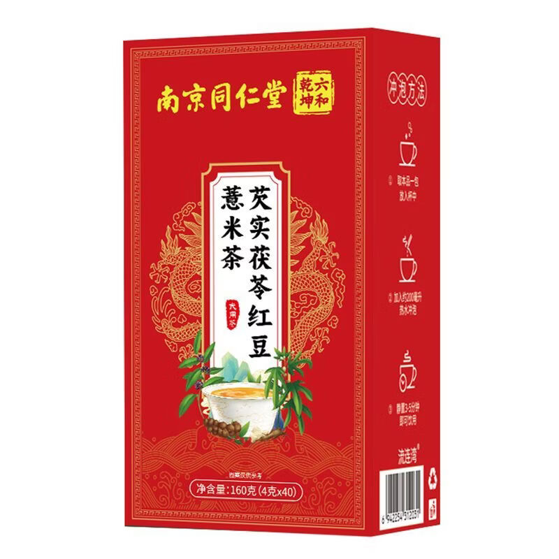 南京同仁堂茯苓红豆薏米茶中药材养生茶40包*1盒 40包*3盒