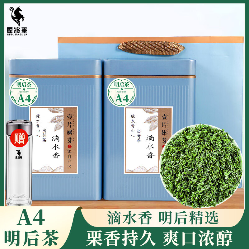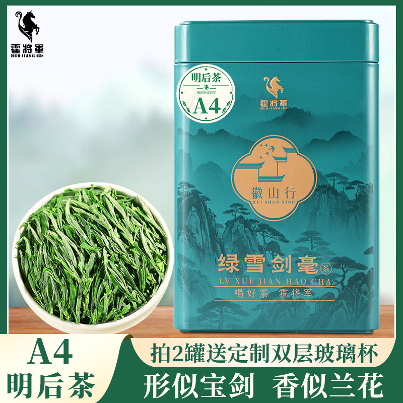 霍将军滴水香茶叶A3A4罐装2026新茶黄山歙县高山绿茶叶自己喝250克罐装 A4明后精选500克罐【赠双层杯】