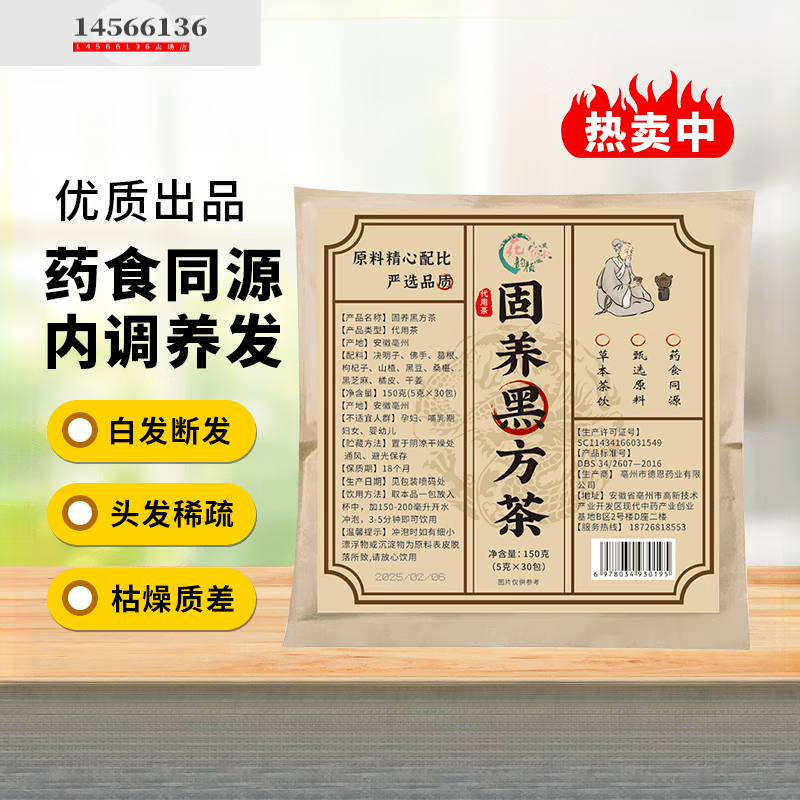 通用官方颜固养黑方茶内调养发药食同源草本茶饮甄选原料严选品质 收藏加购 优先发货 150g*3包