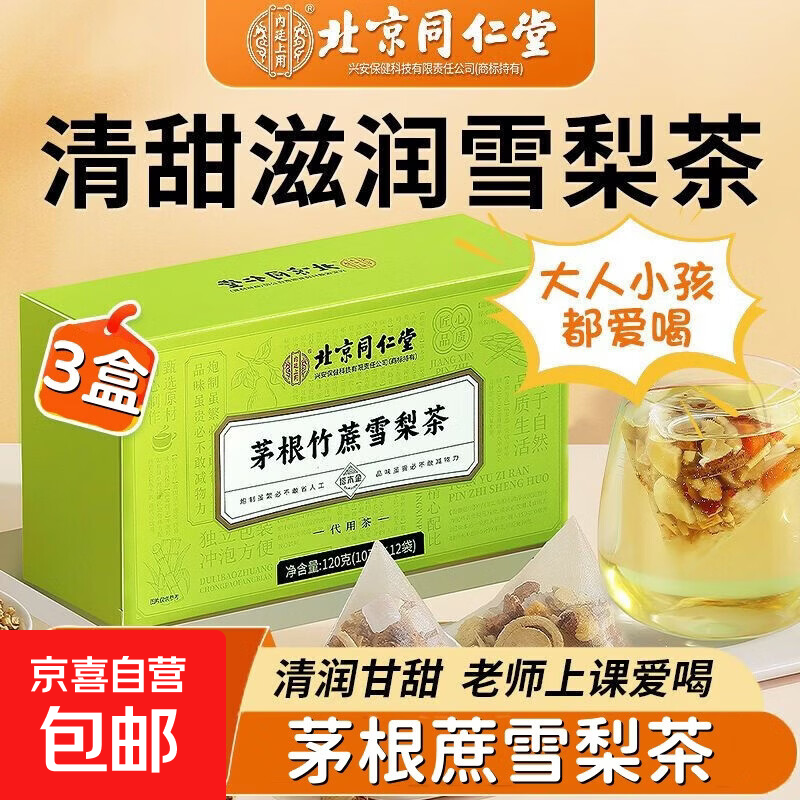 北京同仁堂茅根竹蔗雪梨茶滋阴清热通肠润便润肺润喉解暑清火 北京同仁堂茅根竹蔗雪梨茶 12袋*3盒
