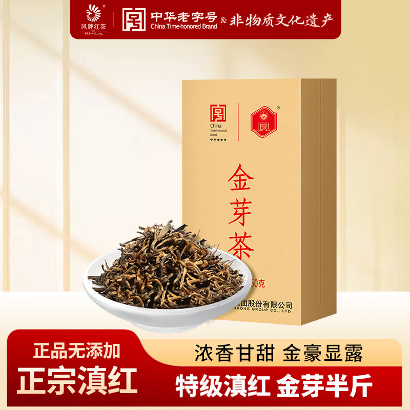 凤牌红茶云南滇红茶特级正宗半斤蜜甜香金芽茶250g凤庆茶叶送长辈