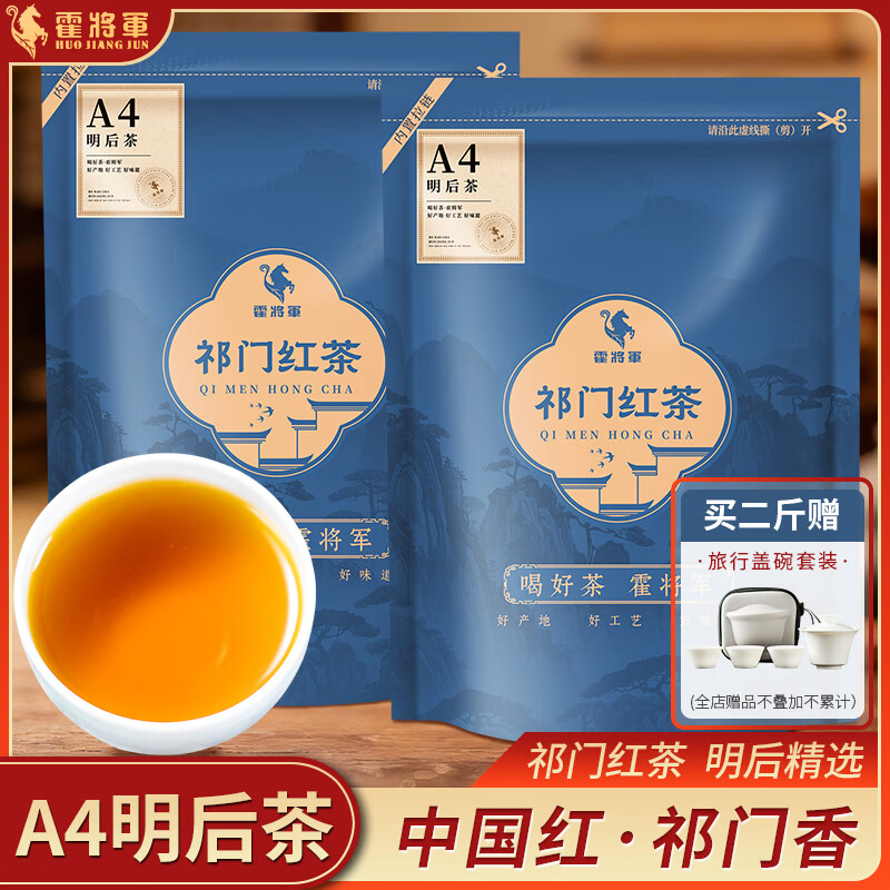 霍将军祁门红茶A3A4袋装正宗2026新茶金针红香螺安徽黄山春茶花香50g袋 A4明后茶500克袋【拍二斤送盖碗】