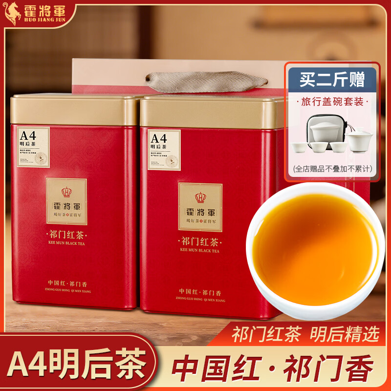 霍将军祁门红茶A3A4罐装正宗2026新茶金针红香螺安徽黄山春茶花香50g盒 A4明后茶500克罐【拍二斤送盖碗】