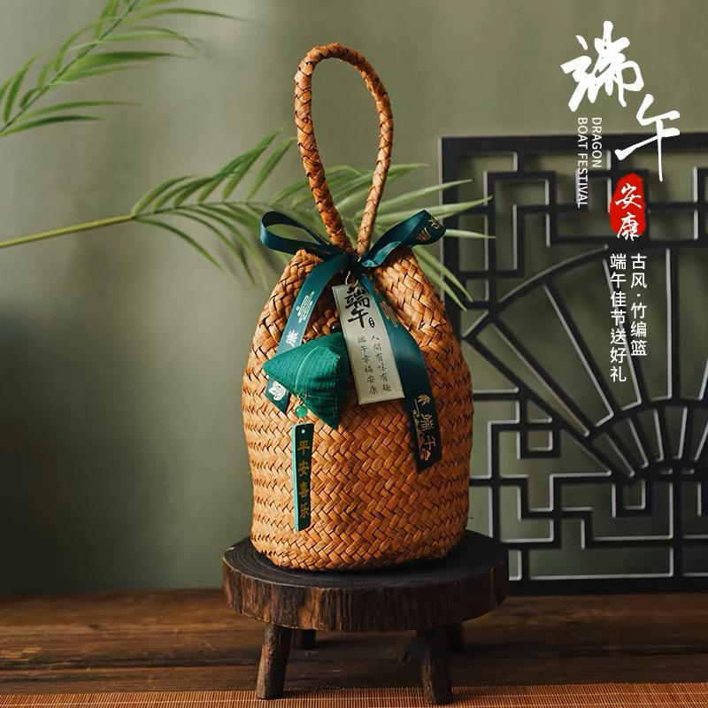 2026粽子咸鸭蛋茶叶特产包装盒草编手提礼品篮国风端午伴手礼礼盒