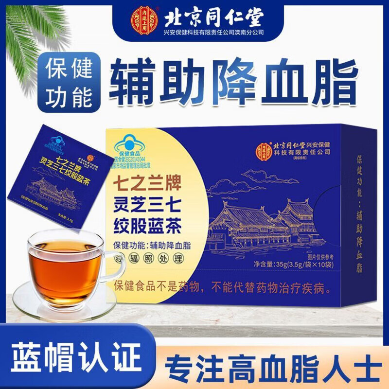 同仁堂(TRT)同仁堂灵芝三七绞股蓝茶清脂茶降血脂胆固醇甘油三脂高的专用 3盒/18贴疗程装 实付2盒钱 10袋*1盒