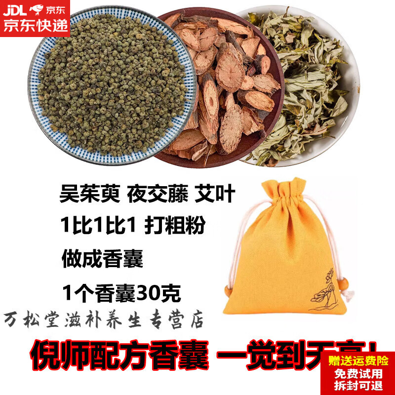 南京同仁堂原料吴茱萸夜交藤艾叶茶1比1比1打粉做香囊香包正品倪师配方一觉 【巩固装发3个】配好香囊 30g*3包