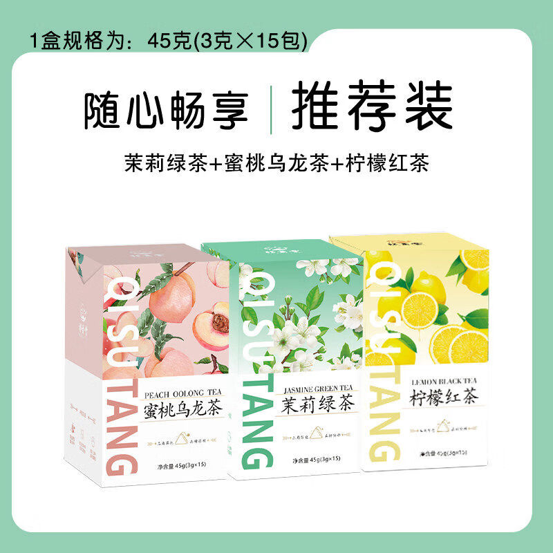 祁素堂蜜桃乌茶冷热泡桃乌茶茶水果茶三角茶礼盒 实惠装茉莉+柠檬+蜜桃45g*3盒