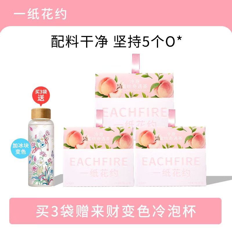 一纸花约长安的荔枝联名冷泡乌茶夏日玫珑蜜桃茶独立小装 赠来财变色冷泡瓶蜜桃乌茶10泡X3