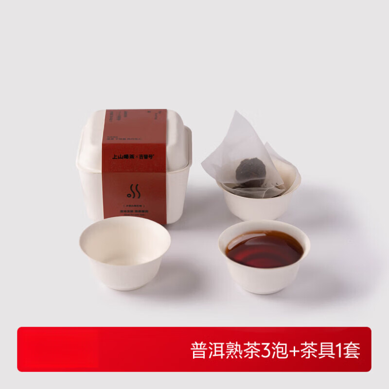 上山喝茶 功夫茶叶茶具组合 盖碗+茶叶组合 含绿茶红茶白茶乌龙茶 熟普-523桂圆香1盒 9g 每盒3泡茶+茶具1套