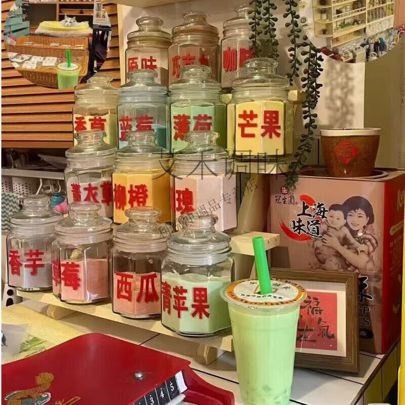 食怀老式果味粉冲奶茶童年回忆90后怀旧口味混合一包50g粉包椰果3 袋混合装21种口味任意备注
