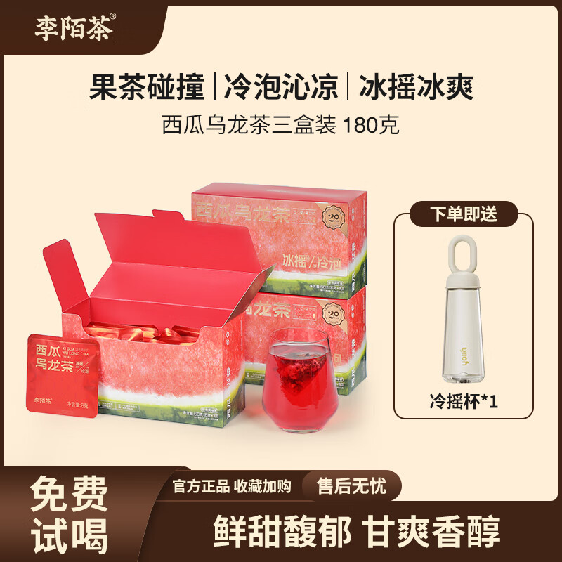 李陌茶茶西瓜乌龙茶花果茶 苹果草莓火龙果独立小包冷泡茶饮品 冷泡西瓜乌龙茶60g*3盒赠冷摇杯