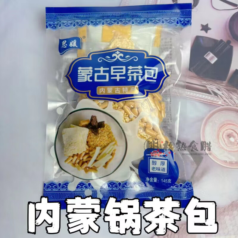 内蒙古早茶包奶茶粉牛肉干黄油果条奶皮子干奶豆腐炒米混合装锅茶 【含奶茶炒米果条牛肉干楚拉】 3袋【全家福早茶包】