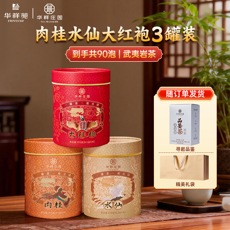 华祥庄园水仙肉桂大红袍组合乌龙茶叶武夷岩茶自饮罐装 【3罐组合】水仙肉桂大红袍 共90包