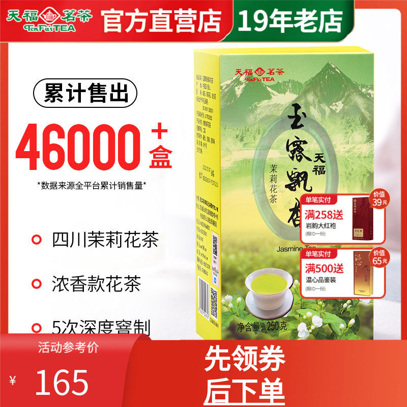 天福茗茶 茉莉花茶四川 绿茶春茶窨制鲜灵甘润玉露飘香盒装250克