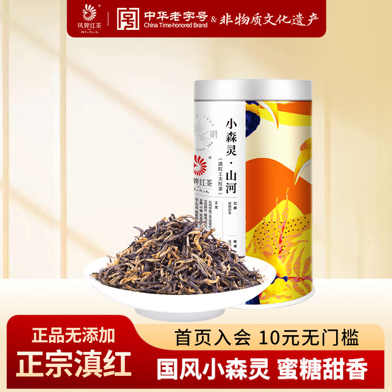 凤牌红茶正宗凤庆滇红茶叶工夫特级浓香型小森灵山河50g送礼罐装