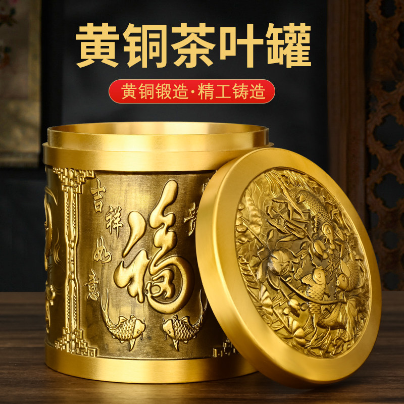 黄铜茶叶罐摆件富贵有余茶罐密封罐储存罐笔筒家居客厅装饰品