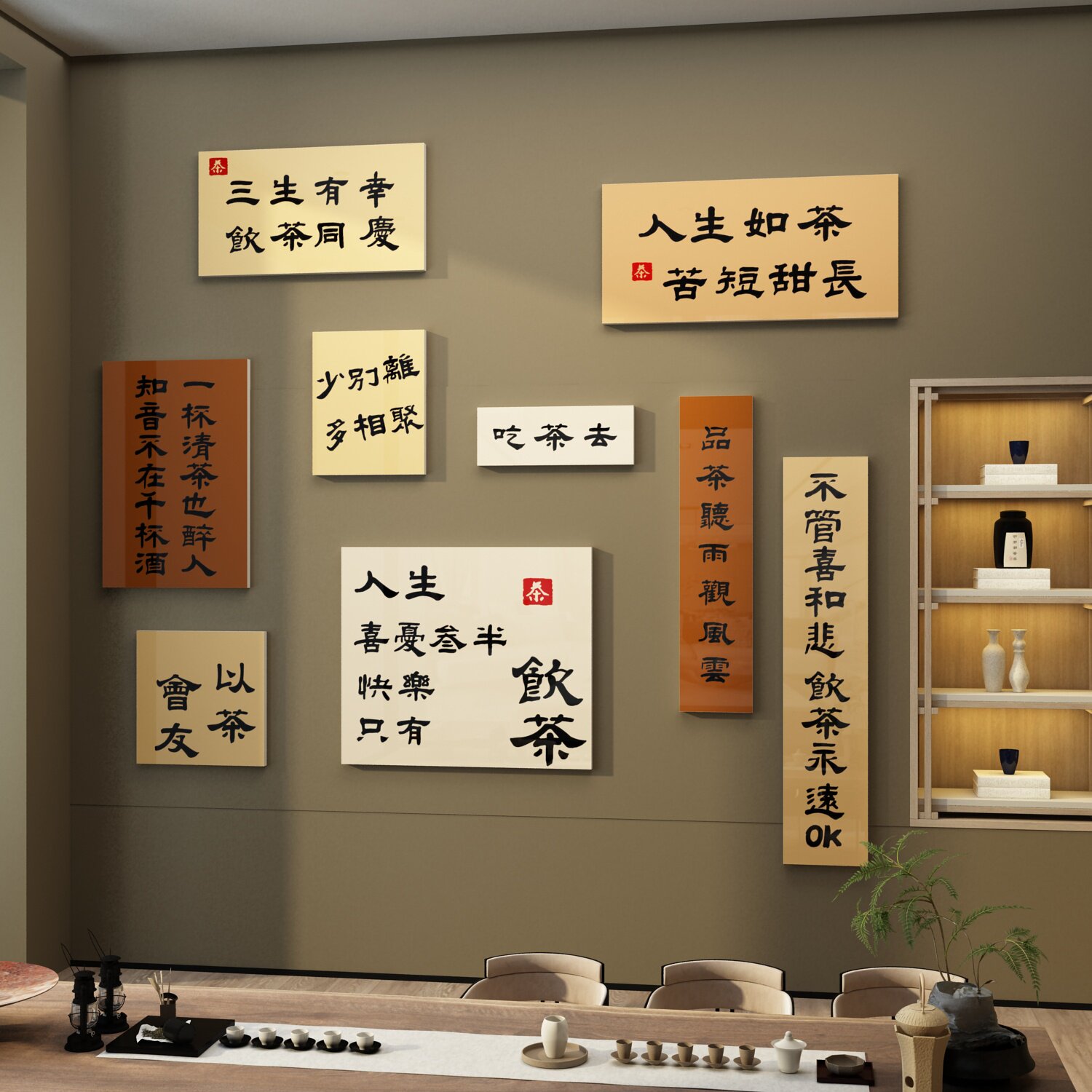 茶室背景墙装饰氛围茶叶店布置用品文化艺楼馆桌社墙壁贴纸画
