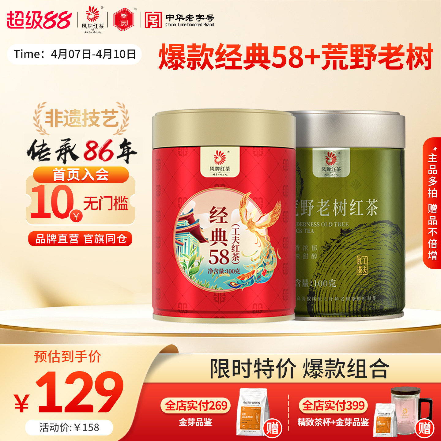 凤牌经典58滇红茶云南凤庆正宗滇红茶特级浓香型工夫红茶罐装茶叶