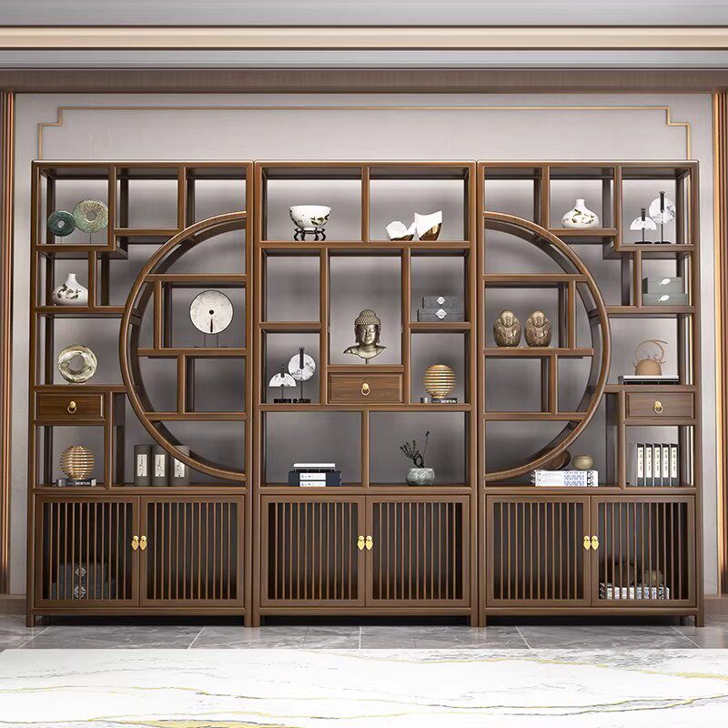 美中式博古架茶具茶叶柜置物架台式办公室茶桌展示收纳架整墙隔断