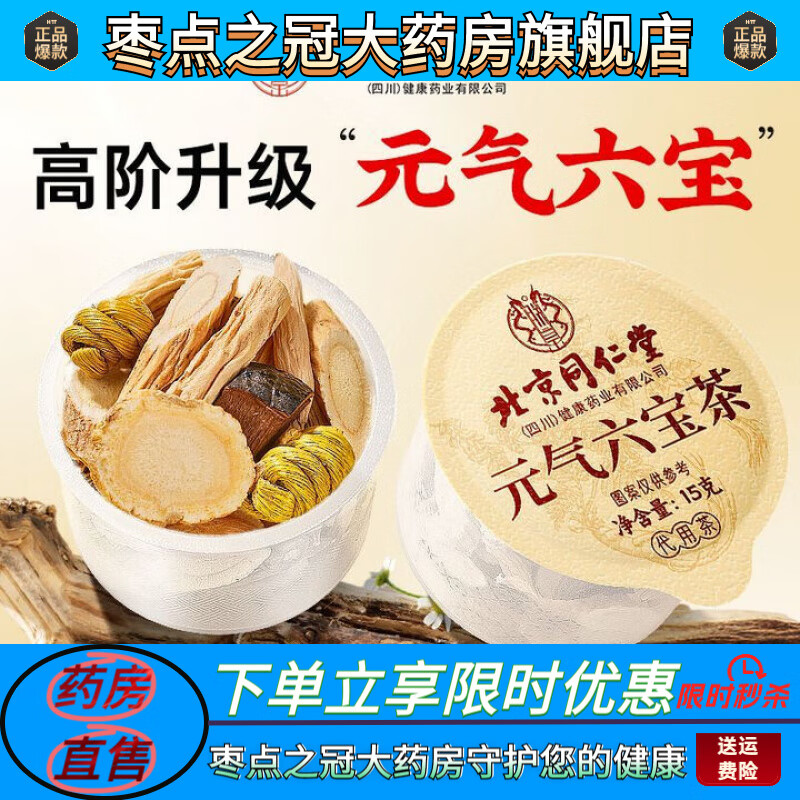 同仁堂同仁堂灵芝元气茶 北京同仁堂元气六宝茶225g石斛麦冬灵芝西洋参 225g*2盒 罐精气神常驻