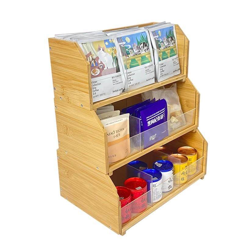 手提茶叶收纳柜竹制木茶叶包手提收纳架袋装食品收纳柜储物旋转