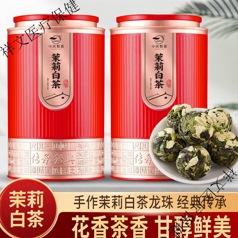 通用茉莉龙珠 茉莉白茶龙珠福鼎白茶2025寿眉茶叶茉莉花茶紧压100g/罐 40颗共2罐