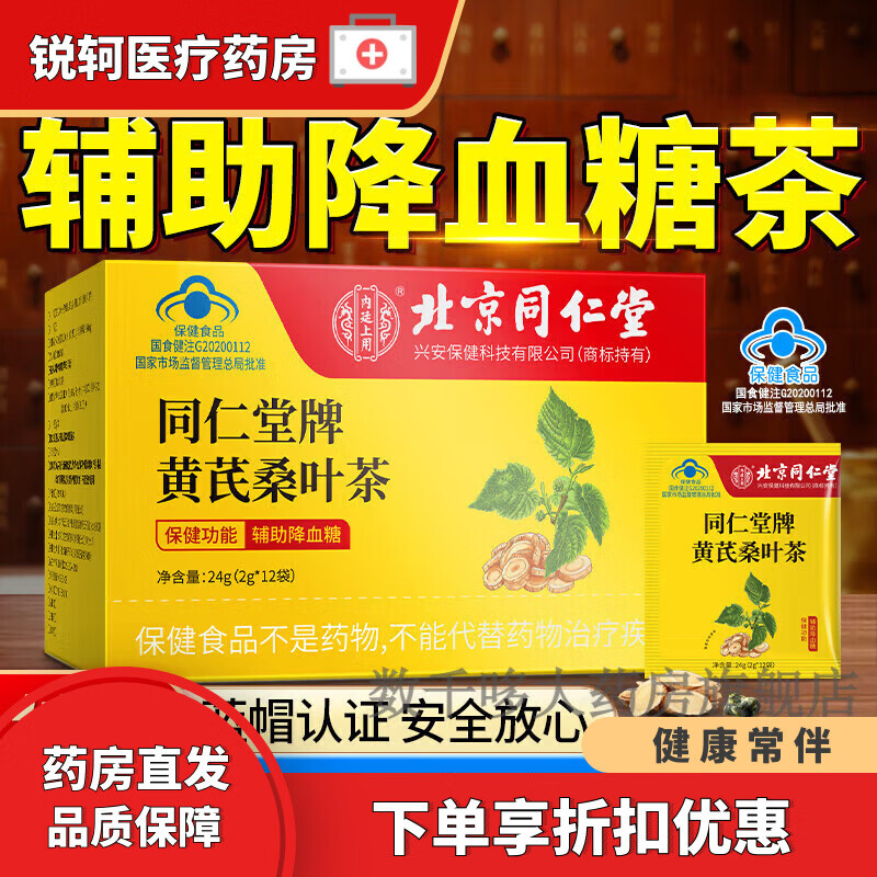 通用黄芪桑叶茶辅助血糖茶中老年人补品养生茶 3盒周期7 2g*36包