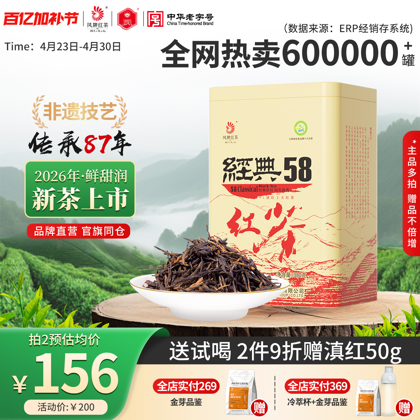 凤牌红茶2026年新茶滇红经典58正宗云南凤庆茶叶特级浓香380g口粮