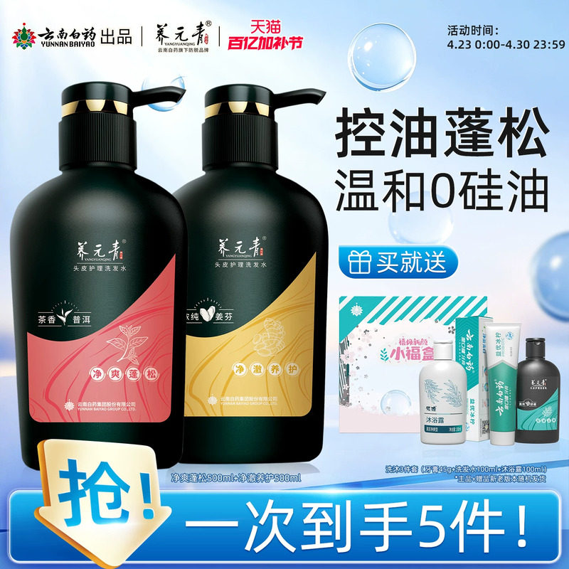 云南白药养元青洗发水生姜茶叶精华无硅油清洁大瓶组合500ml*2