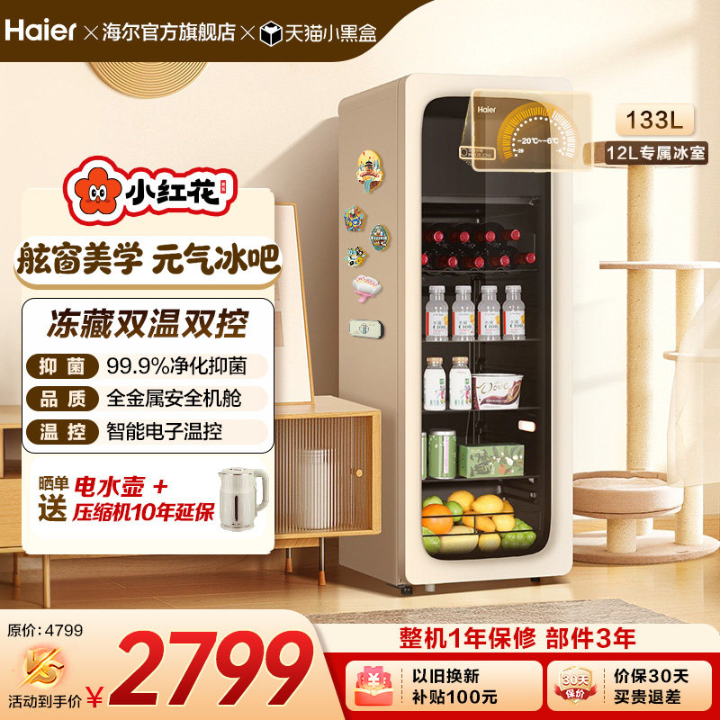 海尔小红花套系133升元气冰吧小型冷藏保鲜家用茶叶饮料柜冰箱