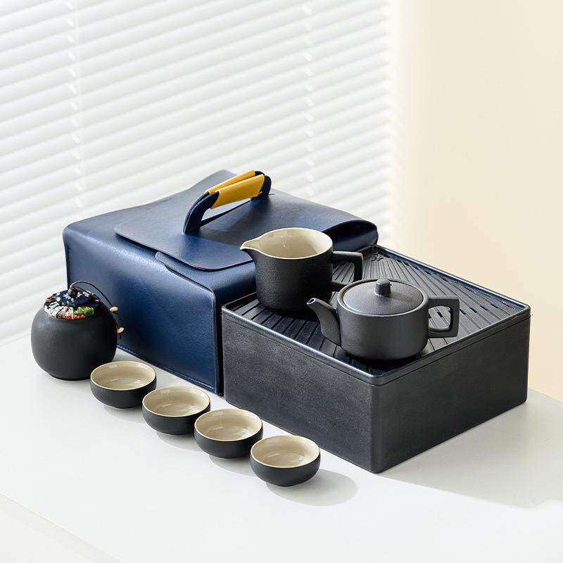 户外黑陶旅行功夫小茶具套装一壶四杯茶盘茶叶罐简约便携式伴手礼