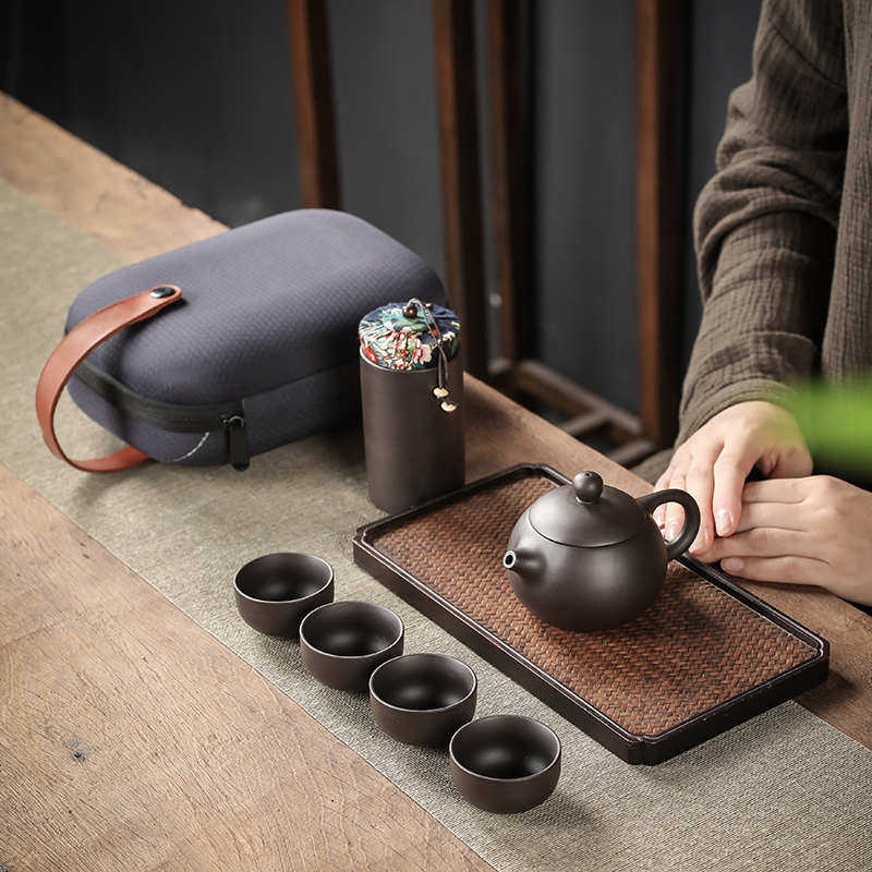 宇轩 旅行茶具套装便携包一壶四杯带茶叶罐紫砂功夫茶壶礼品订制