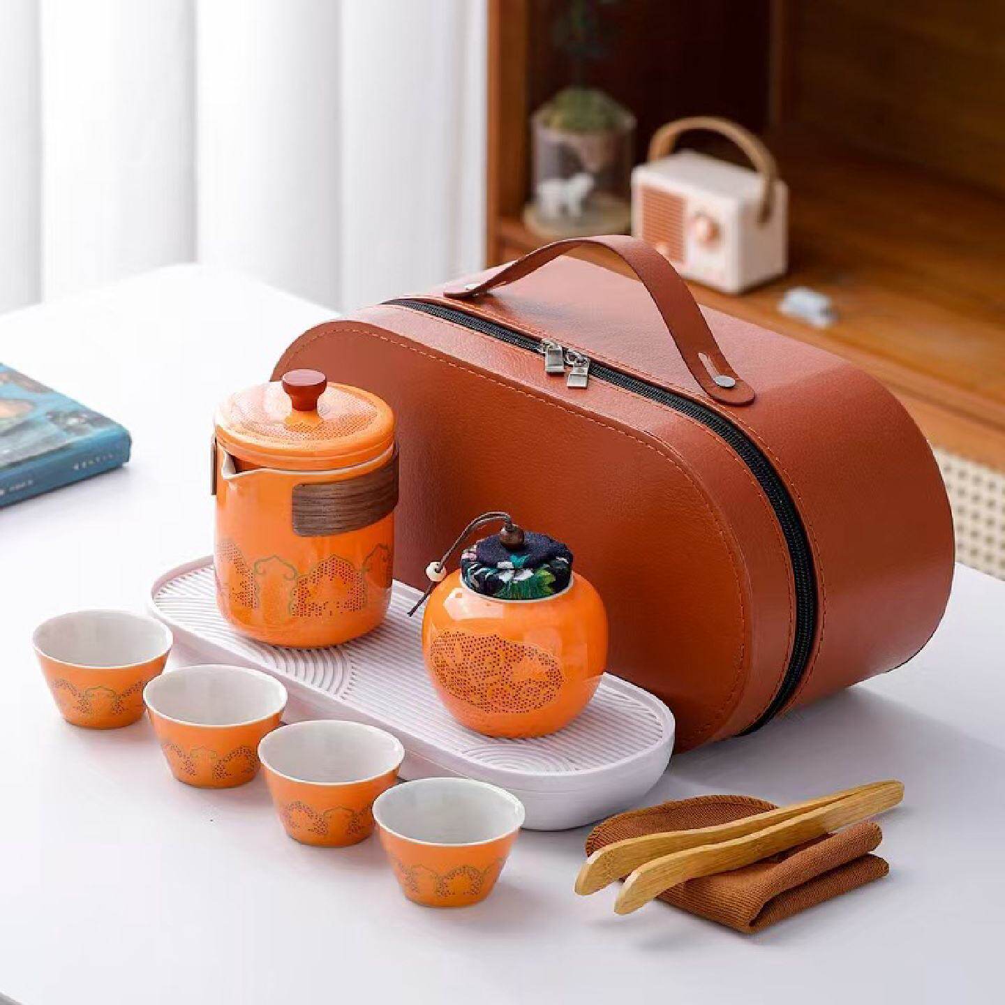 年终礼品开门红便携式功夫旅行茶具陶瓷小套装一壶四杯茶杯茶叶罐
