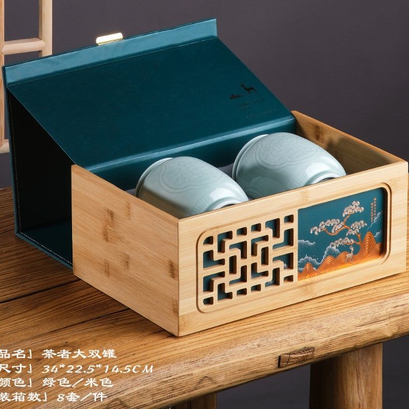 高档绿茶包装盒陶瓷茶叶罐中式礼盒包装茶M叶密封储物罐红茶空定