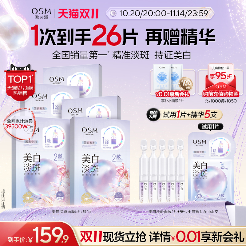 【双11狂欢】欧诗漫珍珠美白淡斑面膜烟酰胺提亮熬夜去黄暗沉