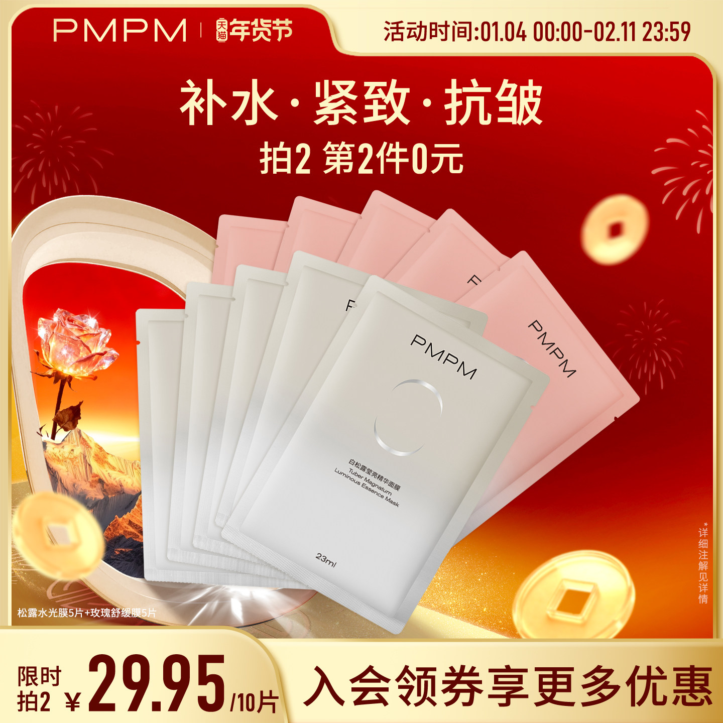 【立即抢购】PMPM玫瑰白松露贴片面膜女补水清透紧致保湿嫩肤舒缓