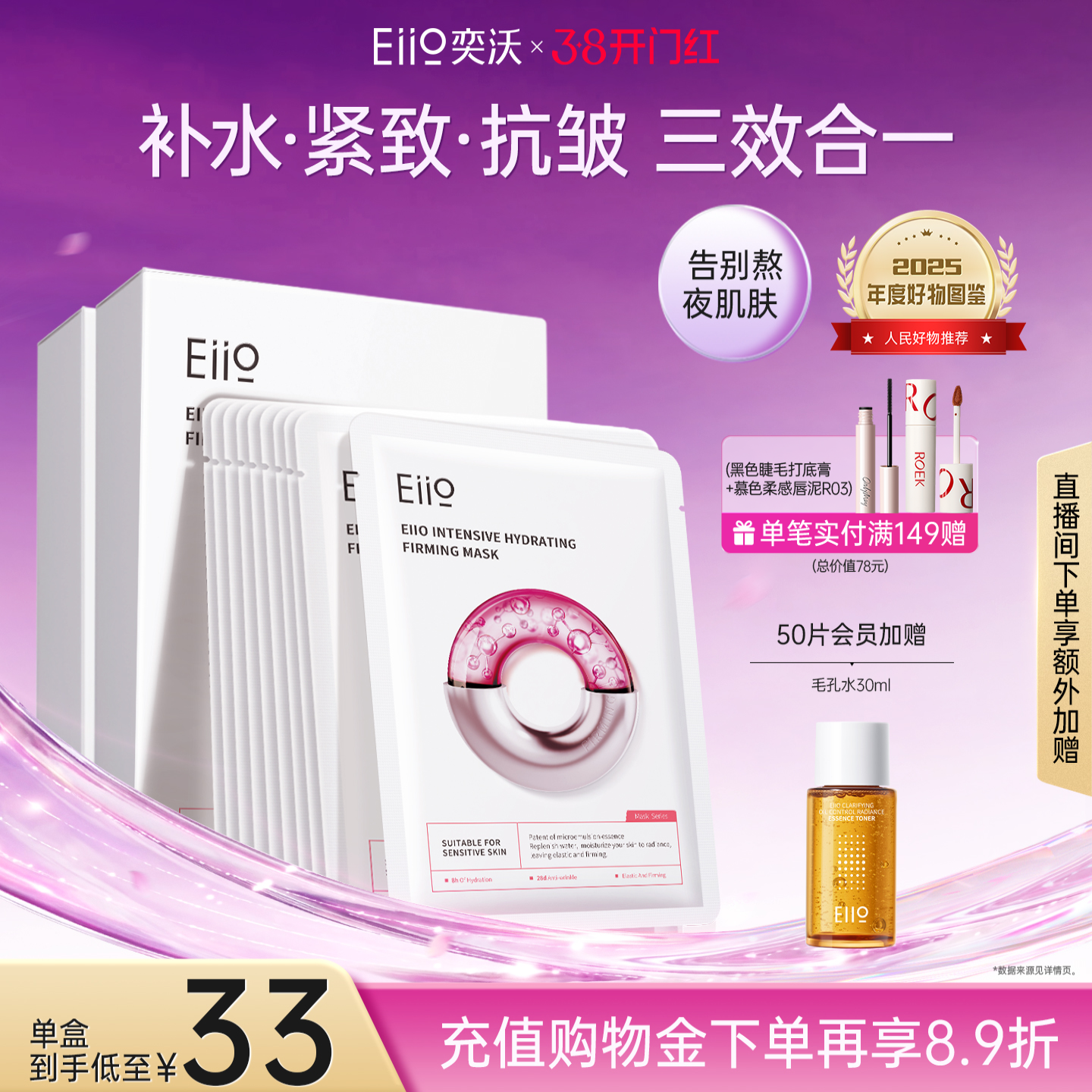 eiio水光面膜补水抗皱紧致嘭弹保湿缓解敏肌面膜ello官方旗舰店